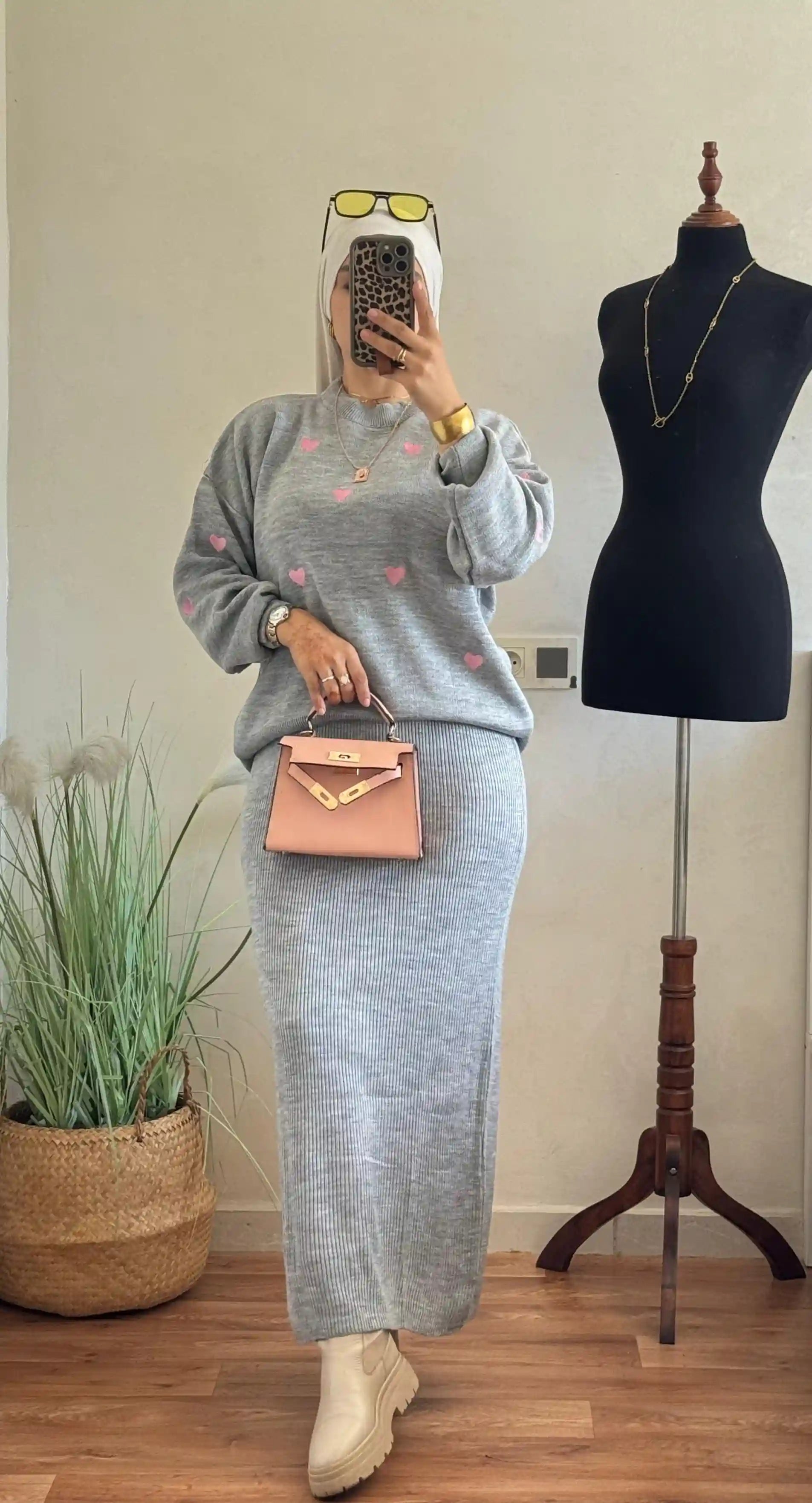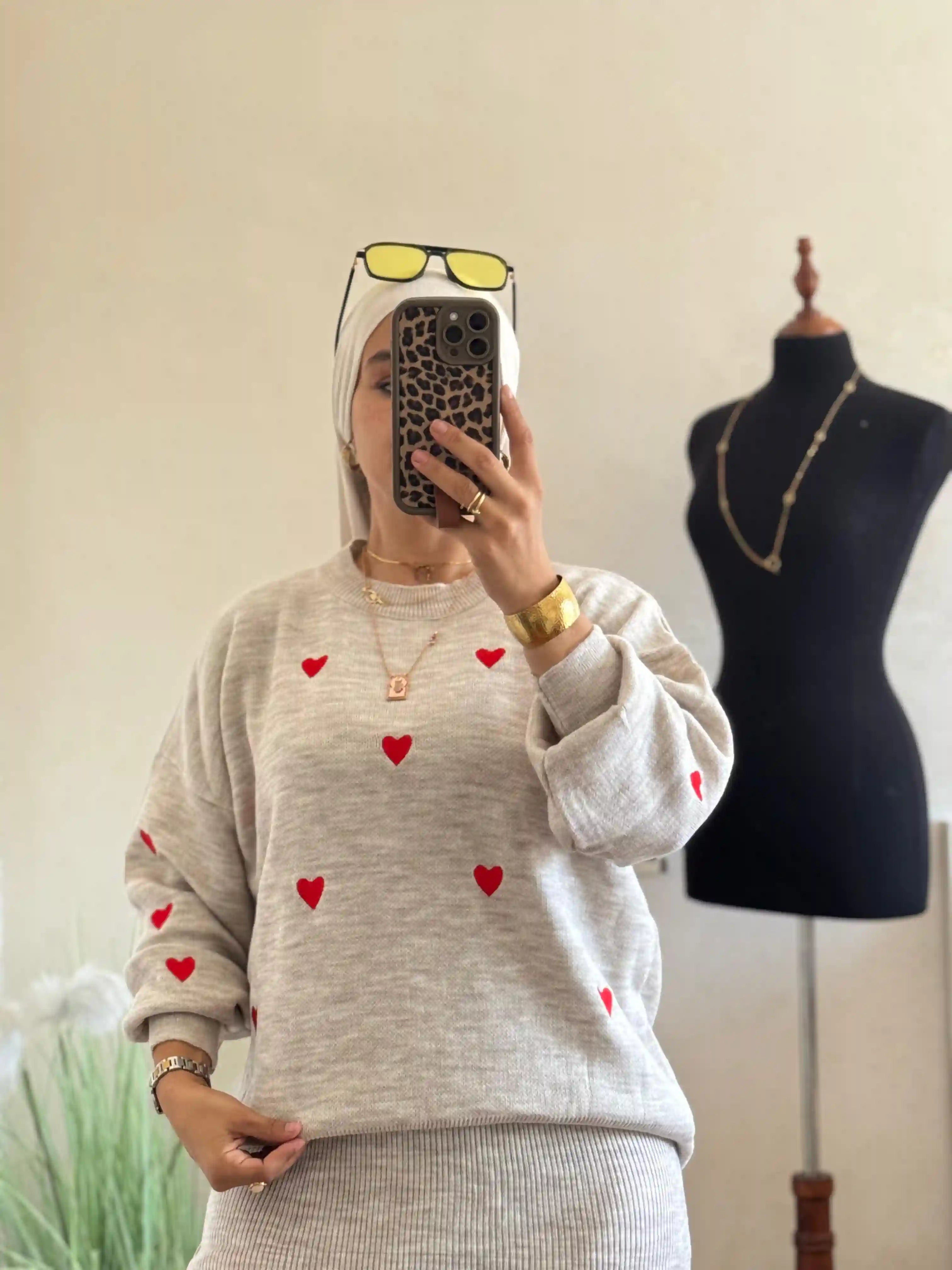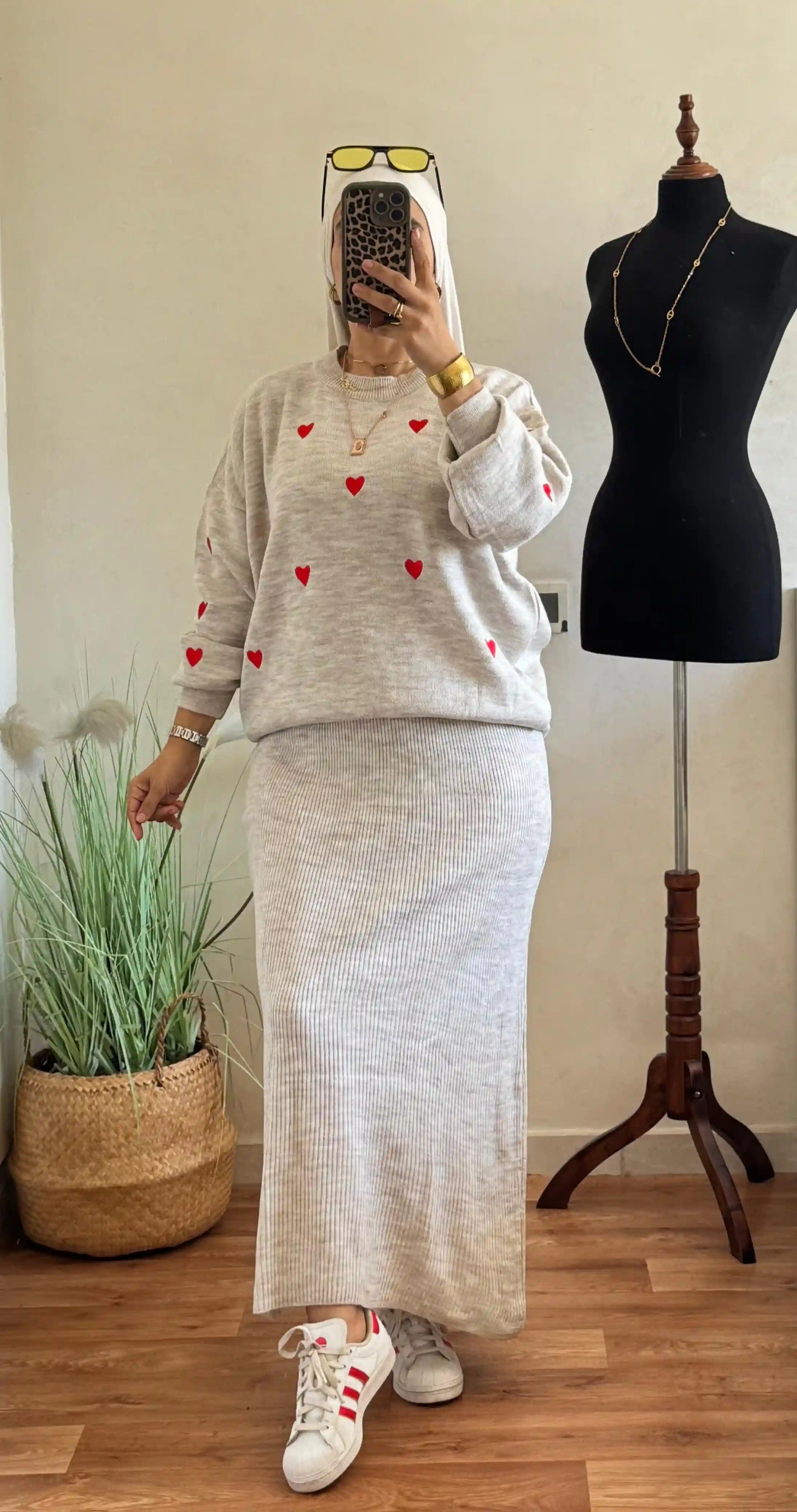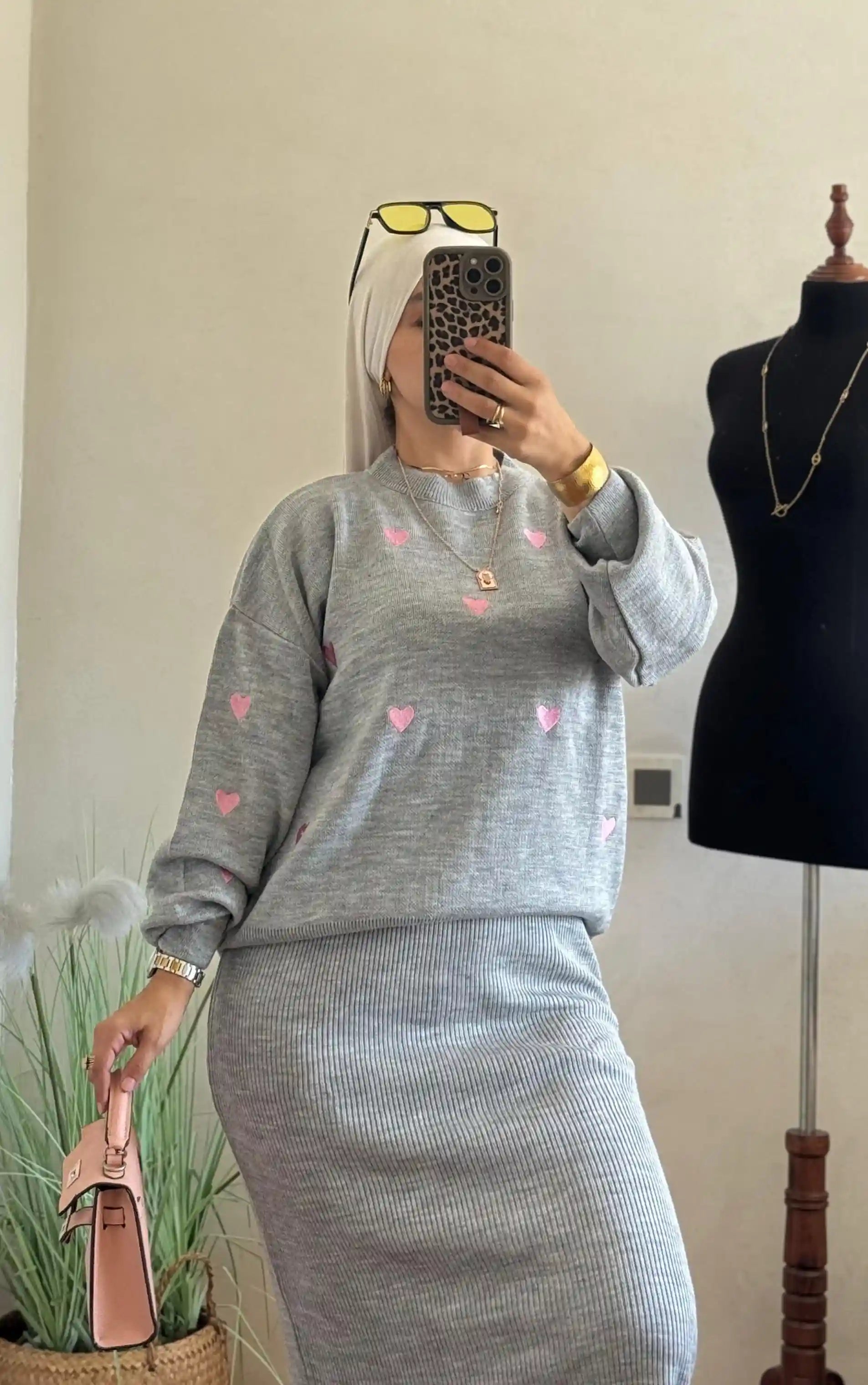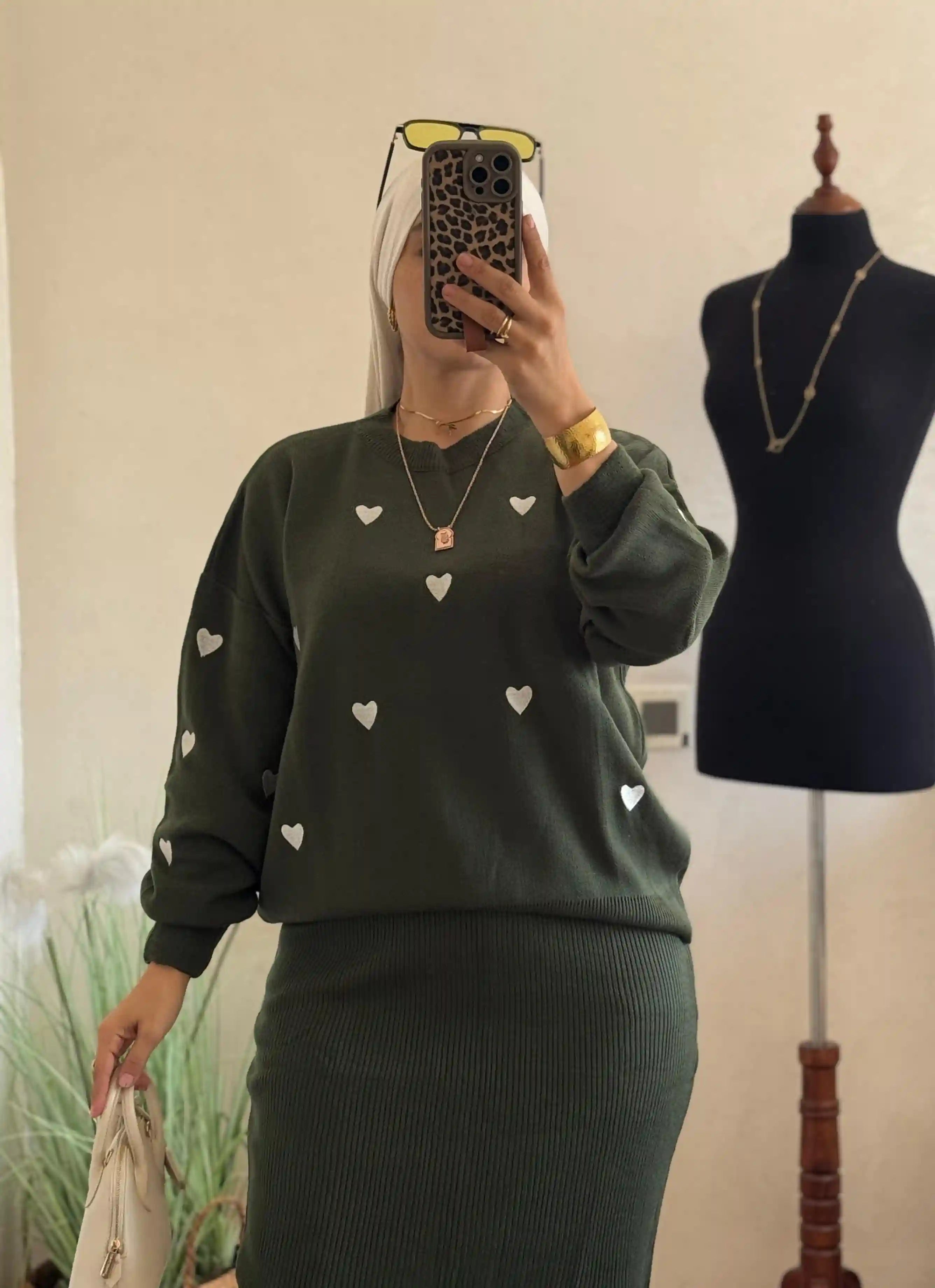 انصومبل جيب مع تريكو مع الطرزة على شكل قلب