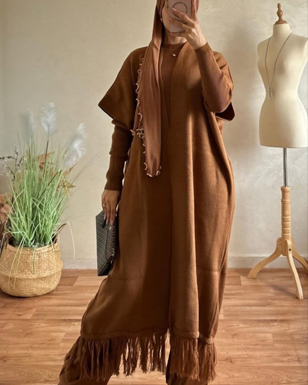 Abaya émiratie Noor avec foulard, confectionnée dans le plus beau tissu crêpe importé.
